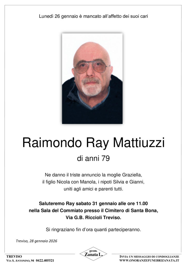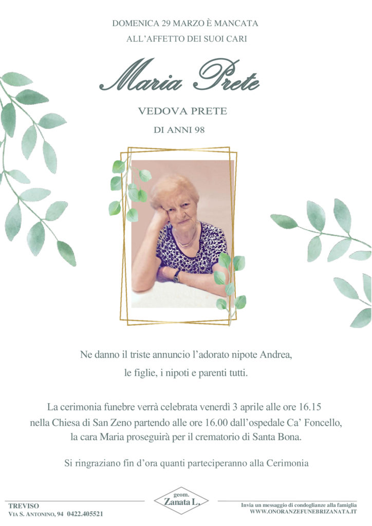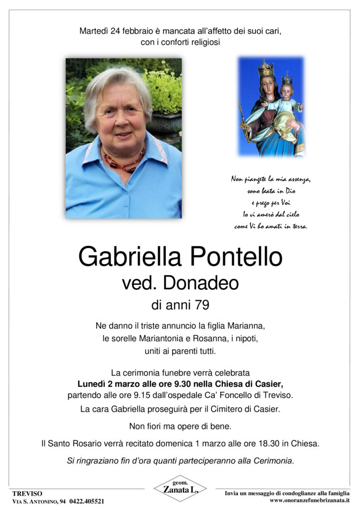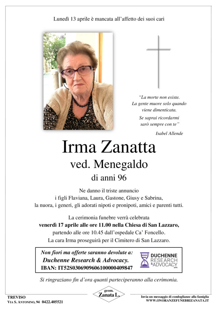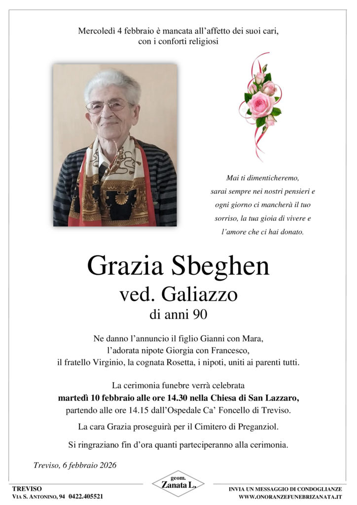 Onoranze Funebri Zanata dal 1980 fornisce un valido supporto alle famiglie colpite da un lutto, fornendo servizi funebri completi a Treviso. L'agenzia di pompe funebri trevigiana si occupa di tutti gli oneri organizzativi e burocratici: dal trasporto della salma al funerale, sino all'estremo saluto. Il personale garantisce la completa riservatezza di ogni progetto e assicura l'unicità di ciascuna proposta, consentendo ai cari dell'estinto di salutarlo ed omaggiarne la memoria come avrebbe desiderato in vita.